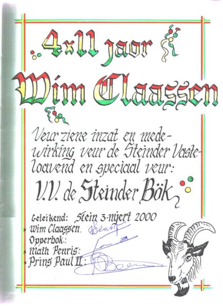 Wanneer kom je als Ingeschrevene in het Gouwe Book van Vastelaoves Vereiniging Steinder Bök? De afspraken hierover geven dit als volgt aan: Eenieder welke zich op een wel zeer bijzondere of op een hoogstaand en buitengewone manier verdienstelijk heeft gemaakt voor de Vastelaovend in Stein en de Vastelaoves Vereiniging de Steinder Bök. De inschrijving dient naar waarde te worden ingeschat en bekrachtigd door het Dagelijks Bestuur van de vereniging. Voordracht is mogelijk door de leden van Vastelaoves Vereiniging Steinder Bök.